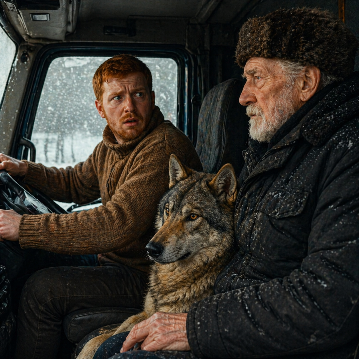 Они поехали. В кабине стало тепло. Старик — Илья Матвеевич — отогревался, пил чай, ел бутерброд. Вёл себя спокойно, с достоинством. Сергей смотрел на собаку — и чувствовал странное беспокойство. В её взгляде было что-то дикое, древнее.