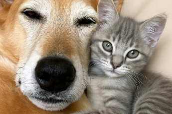 Они очень полюбили полосатого пушистика.