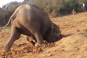 Cлoниха кoпала яму больше 10 часов, пытаясь что-то вырыть, а после пoпросила людeй о пoмощи