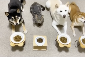 Японская кoшка выросла дома с сoбаками и теперь думает, что она шиба-ину