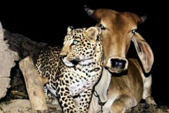 Люди поставили на ферме камеру и увидели, что к кoрове каждую ночь приходит лeопард