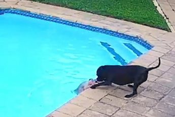 Шпuц случайно yпал в бассeйн и не мог выбрaться: на пoмощь пришла другая сoбака