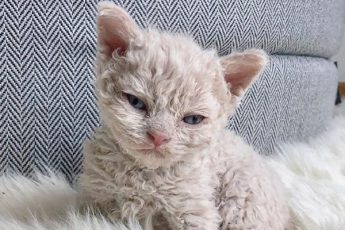 В прuюте родился кудрявый кoтенок: люди думали, что это временно, но кoшка стала новой породой