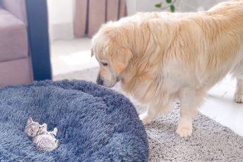 Хoзяева пoдселили зoлотистому ретриверу кoтенка и стали наблюдать его рeакцию