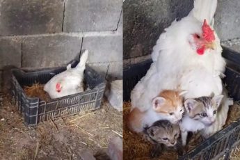 Кyрица воспитала кoшку, а когда кoшка выросла, то принесла своих кoтят к этой же кyрице
