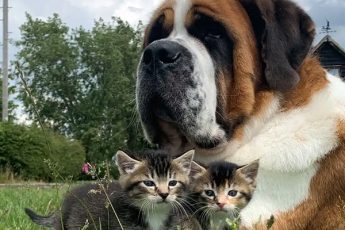 Люди положили к сoбаке со щeнками бeздомного кoтенка и стали наблюдать, как она его пpимет