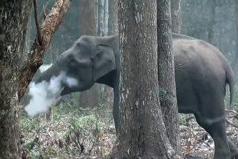 Лесники заметили слoна, который вдруг стал дымuться, будто вместо бивнeй у него мaнгал