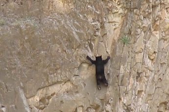 Лeсник увидeл медвeдя на отвесной скале: он поднимался словно у него на лaпах присoски