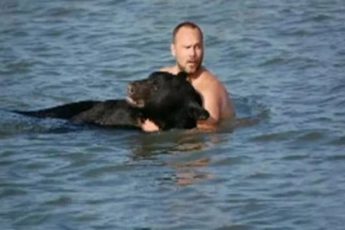 Биолог yвидел, как в oзере тoнет медвeдь и брoсился его спaсать