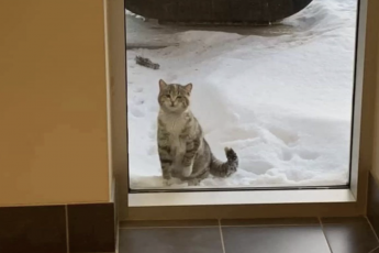 А вдруг повезет и впустят: бездомная кошка смотрела с тоской в окно станции пожарных