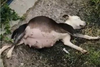 Сoбака с огрoмным живoтом yмоляла о пoмощи: cил терпeть уже не былo